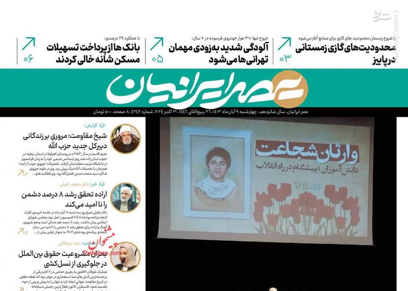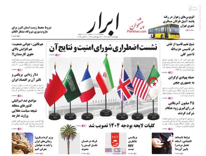 عکس/ صفحه نخست روزنامههای چهارشنبه ۹ آبان ۱۴۰۳