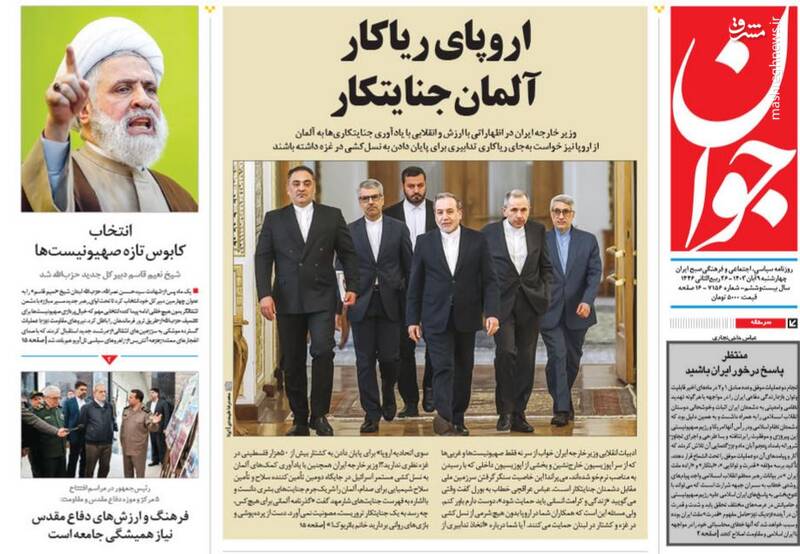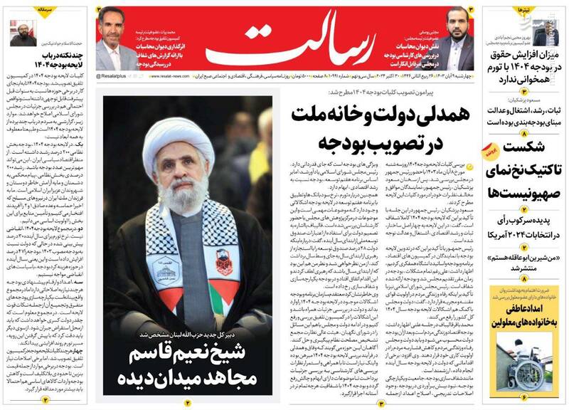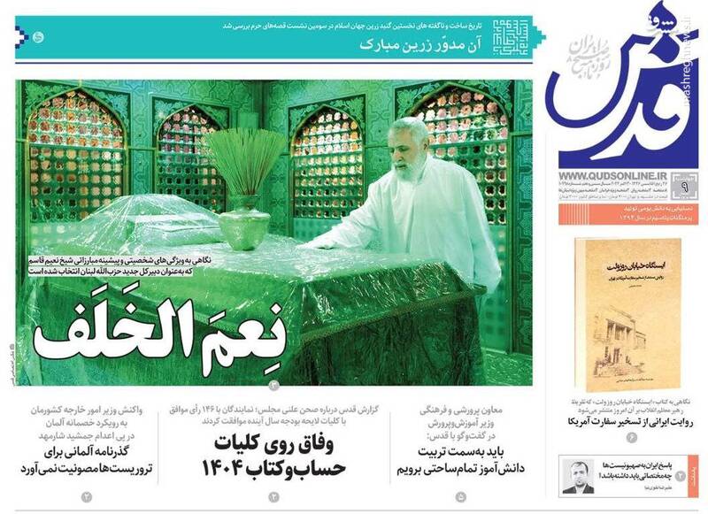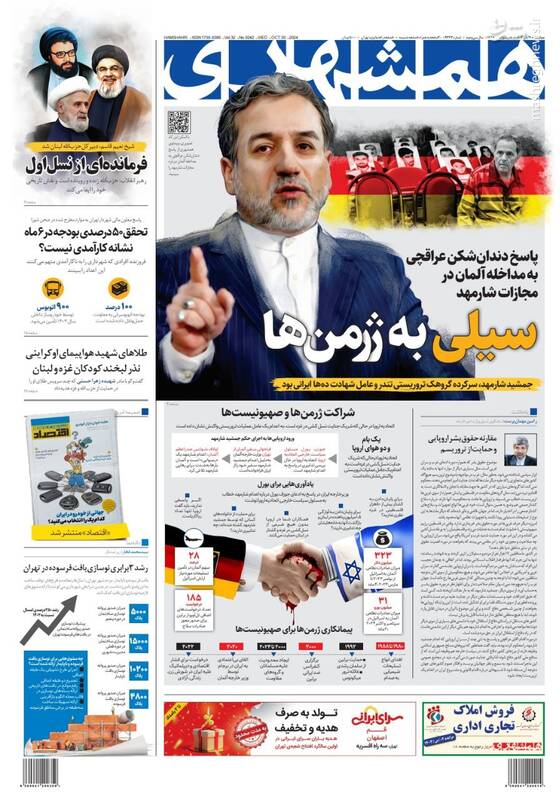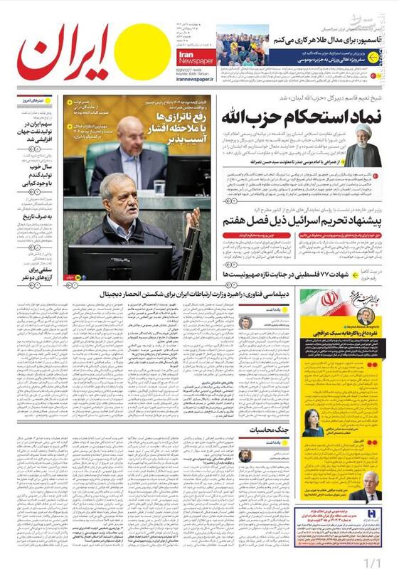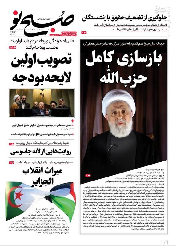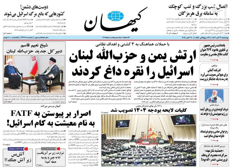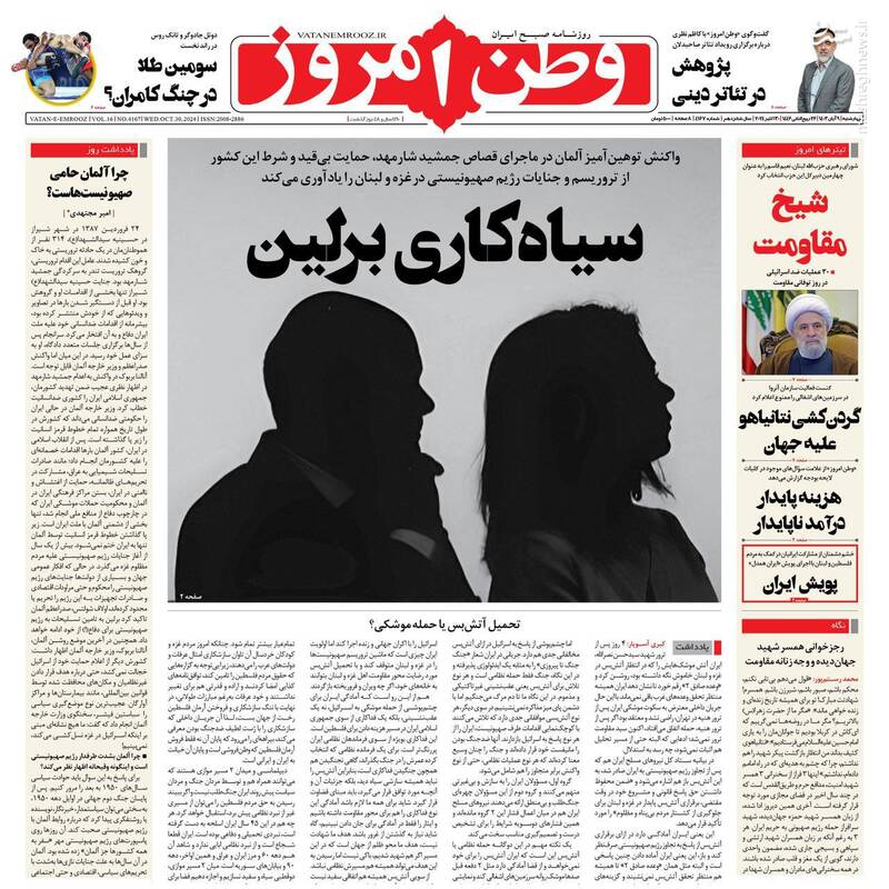 کبنا ؛اروپای ریاکار آلمان جنایت کار،ارتش یمن و حزب الله لبنان اسرائیل را نقره داغ کردند،سیاه کاری برلین،بازسازی کامل حزب الله و... تیتر برخی از روزنامههای چهارشنبه ۹ آبان ۱۴۰۳ است.