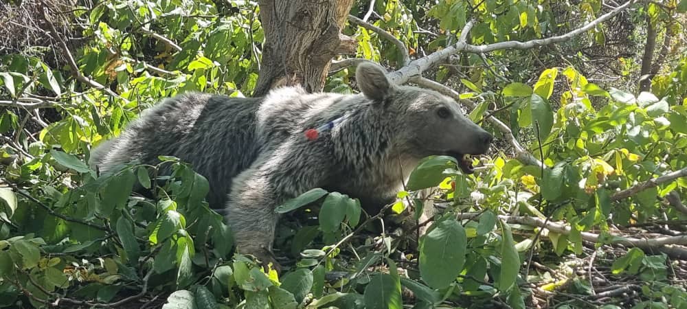 نجات یک قلاده خرس قهوه‌ای گرفتار تله در باغ‌های شهر سی سخت + تصاویر