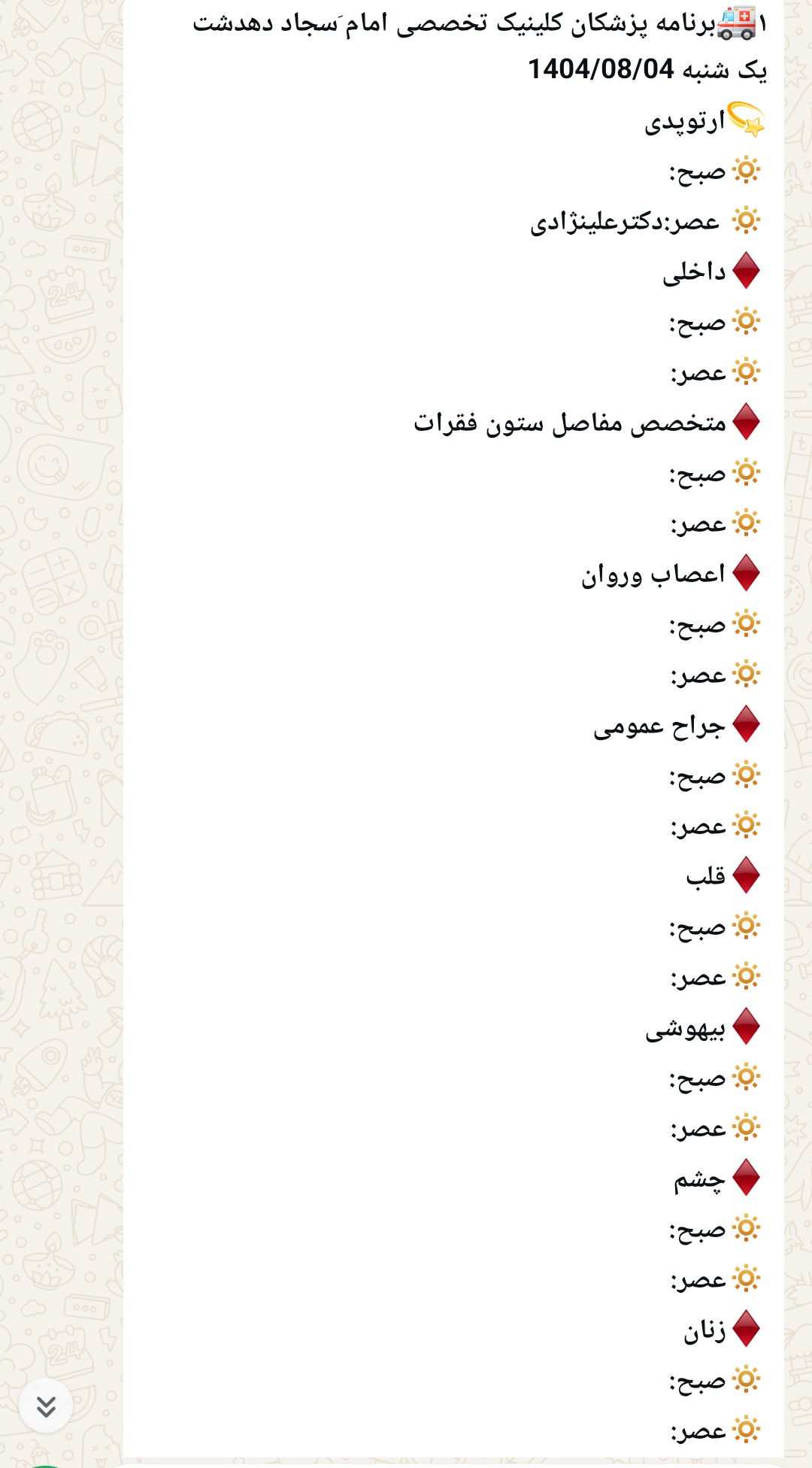 مطابق با اطلاع رسانیهایی که توسط کلینیک امام سجاد (ع) انجام میگیرد هیچ کدام از پزشکان حاضر به حضور در کلینیک نشدند.