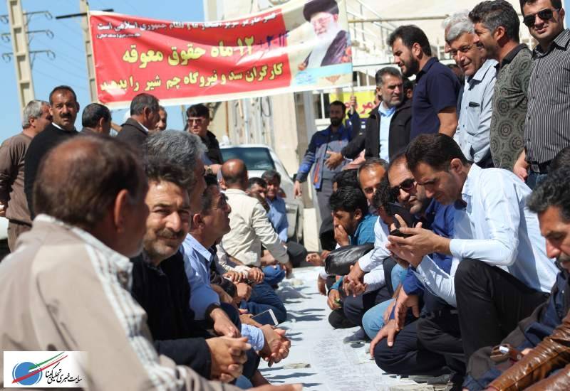 حدود 600نفر از کارگران سد چم شیر 14ماه حقوق معوقه خود را دریافت نکرده اند و روز سه شنبه 14 اسفندماه به نقل از خودشان مجبور شده اند این تجمع را تشکیل دهند تا مسئولان سفره خالی آنها را از نزدیک ببینند.