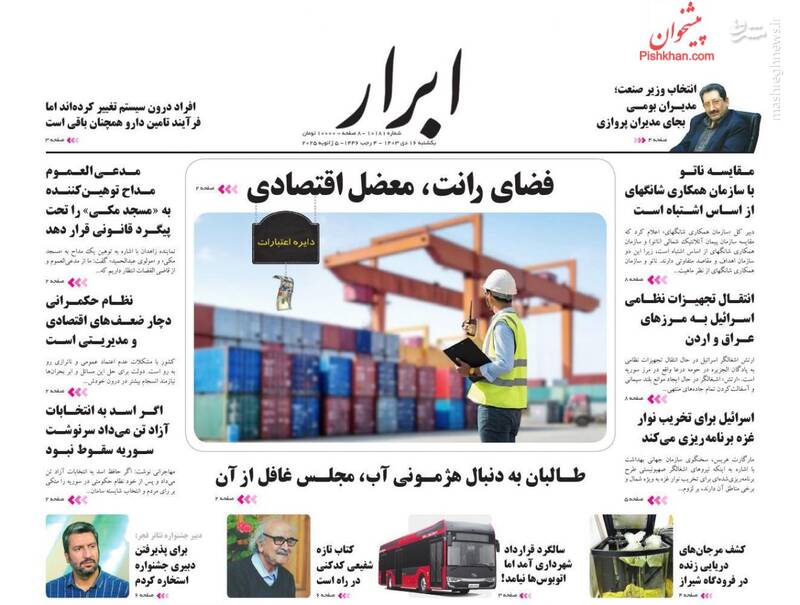 عکس/ صفحه نخست روزنامههای یکشنبه ۱۶ دی ۱۴۰۳