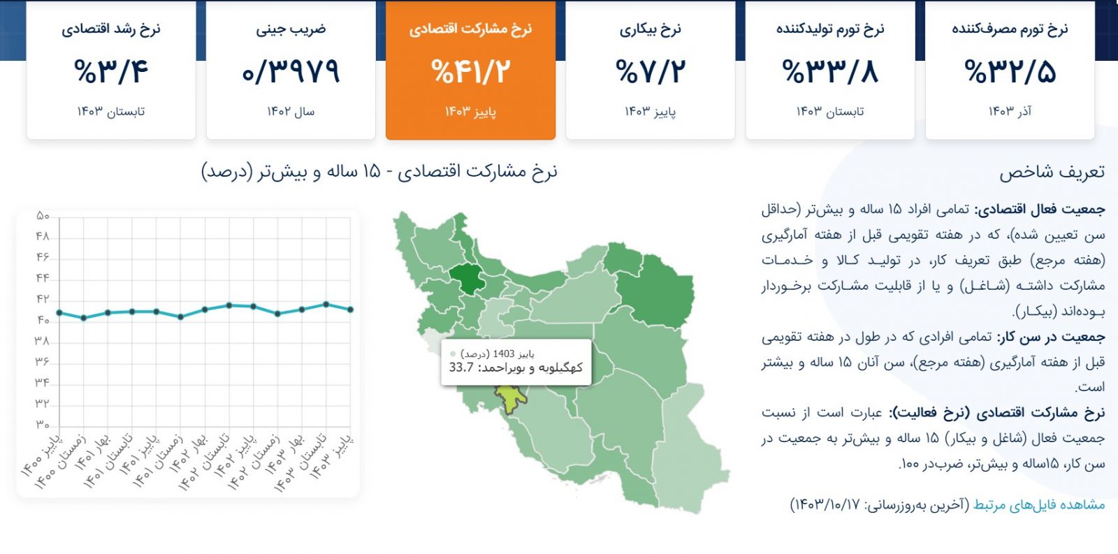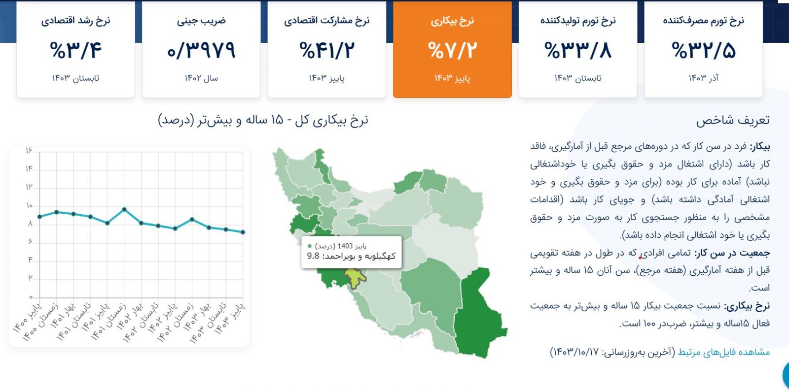 در حالی که مسئولان استان کهگیلویه و بویراحمد نرخ بیکاری را 6 درصد اعلام کردهاند، مرکز آمار ایران این نرخ را 9.8 درصد عنوان کرده است. این اختلاف آمار، نه تنها پرسشهایی درباره دقت اطلاعات ارائه شده توسط مسئولان را به وجود میآورد، بلکه چالشهای در زمینه اشتغال و مشارکت اقتصادی در این استان است. با نرخ مشارکت اقتصادی 33.7 درصد، حدود 60 درصد از افراد در سن کار در کهگیلویه و بویراحمد تمایلی به فعالیت در بازار کار ندارند و این واقعیت، نگرانی برای وضعیت اشتغال و توسعه اقتصادی در این استان به شمار میرود که از ظرفیتها و پتانسیلهای فراوانی در حوزه انرژی، نفت، معادن، آب، منابع طبیعی، گیاهان دارویی و گردشگری برخوردار است.